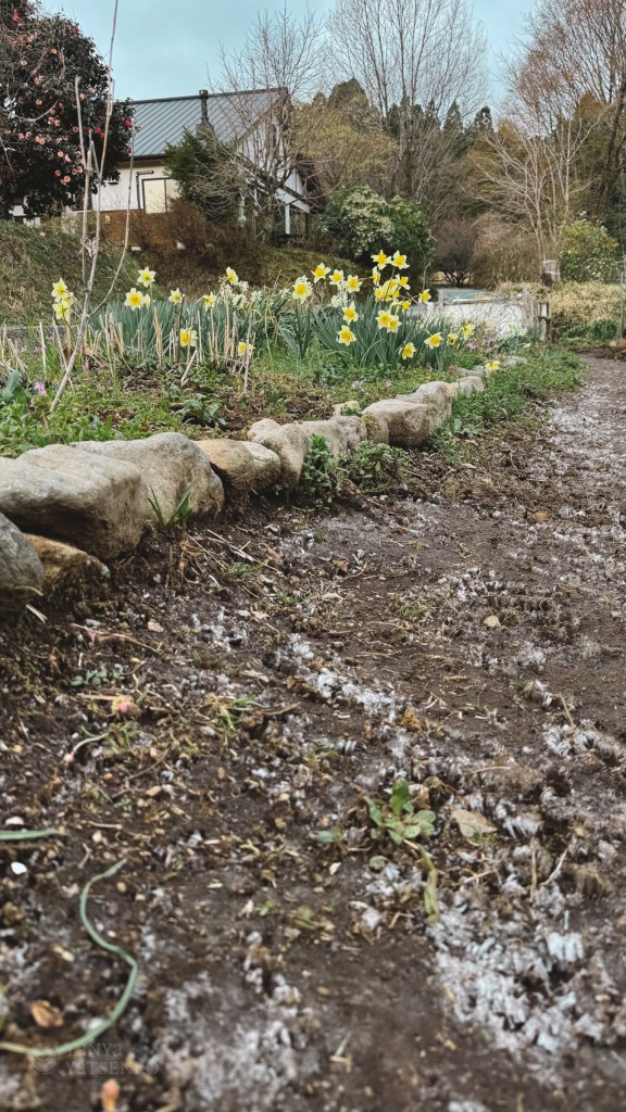 We woke up to 1 degree outside. There was a thin layer of frost on the ground next to our house!
