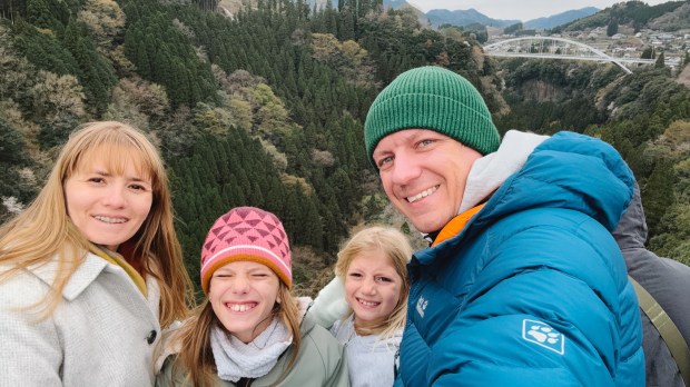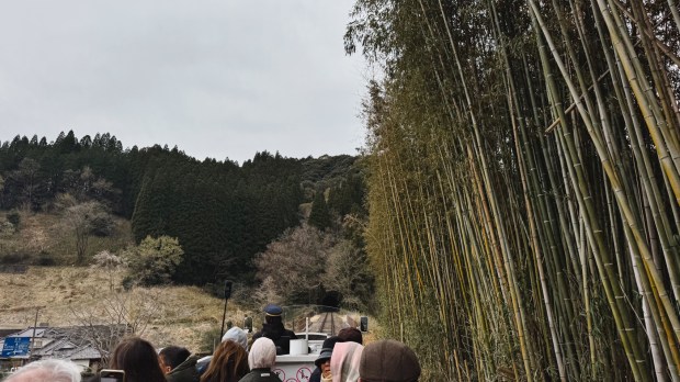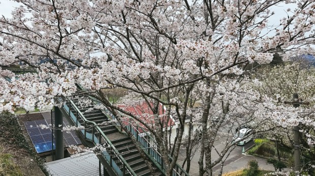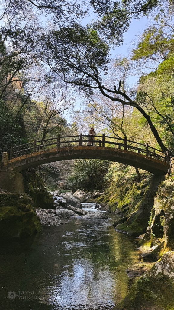 The ride was really nice. We passed under cherry trees, saw spectacular views of Takachiho, and the most exciting part was crossing Japan’s highest train bridge, where we could see the gorge from above. The bridge is no longer in use for regular trains, but it remains open for this tourist train to pass through. We stopped in the middle and were allowed to stand and take photos.