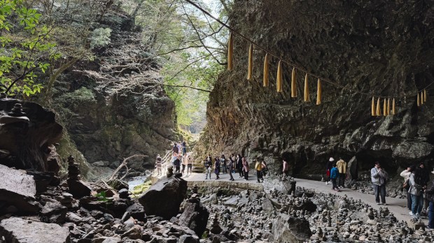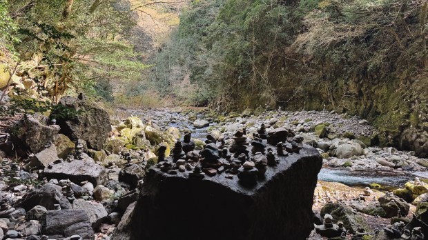 Our next stop was Amanoyasukawara—a mystical cave believed to be the place where the sun goddess, Amaterasu, hid in a famous Japanese Shinto legend. Thousands of stacked stones were left by visitors as offerings or prayers.