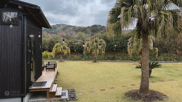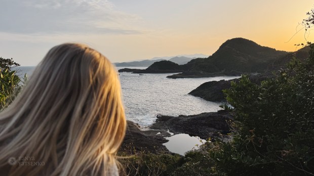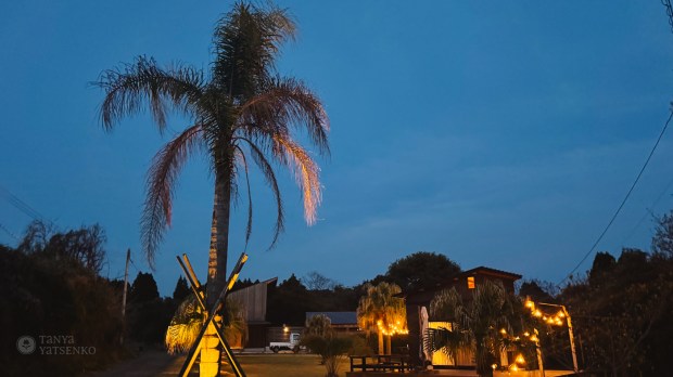 Our next stops were Skeluccha Viewing Deck and Cape Hyuga Observation Deck—breathtaking views of the Pacific Ocean. During sunset, everything looked spectacular. The landscape reminded me a bit of Mauritius, probably because of the tall palm trees growing in this region.