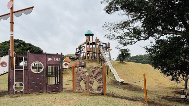 The drive took 2 hours. This time, we took a road with no resting spots, which felt a bit odd. But I found a huge playground with a toilet and vending machines. The girls had a few rides down the slides and didn’t want to leave.