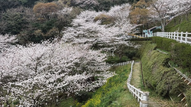 After the ferry, the road was lined with cherry trees in full bloom. There was even a short section where the road played music while driving! I never knew such things even existed.