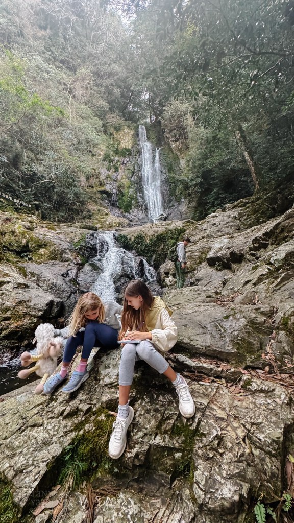 Our last stop before reaching Kobe was a hike to the Kaikyo Observatory (the parking was here). The trail was half easy, half challenging, with steep stairs leading up the hill. But the climb was worth it. Rain started to fall midway, and after it passed, the sun came out—and a rainbow appeared for a few minutes. I wish we could’ve seen it from the top, but even catching a glimpse made us so happy.