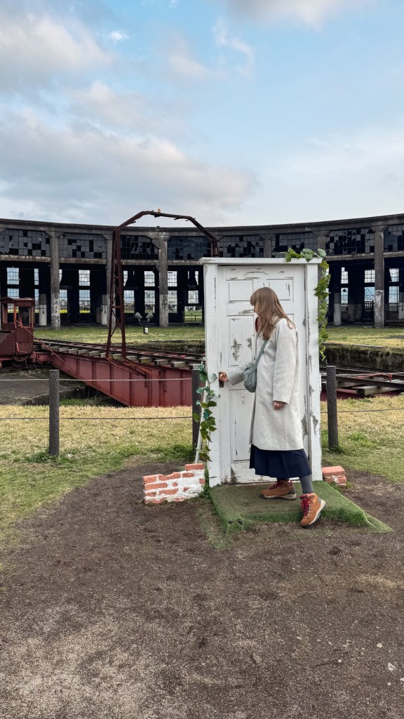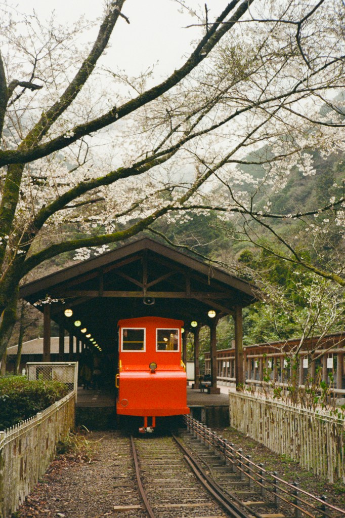 Route:Asakura → Akizuki Castle Ruins → Hita → Bungo Mori Roundhouse→ Beppu We started the day at the Akizuki Castle Ruins, surrounded by early cherry blossoms. Then we drove to Hita, a charming town with canals and wooden houses that look unchanged for decades. We visited the Bungo Mori Roundhouse, a train museum featured in Suzume, which I loved.