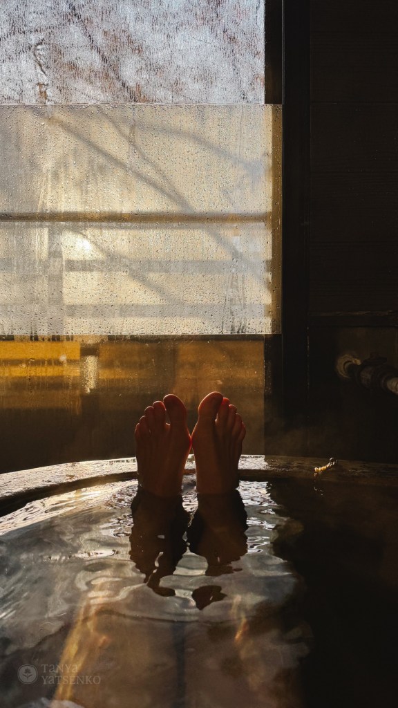 Alex went to a normal public onsen in the hotel, but today I just wanted to enjoy a hot bath in our room. 🙂
