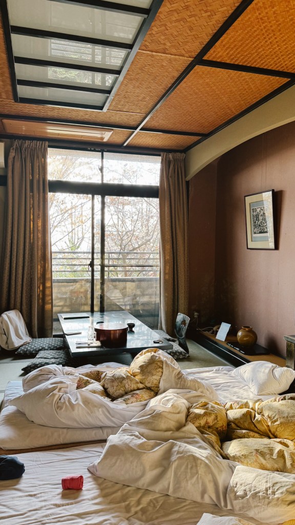 Our first stop was a ryokan with a bathtub on the balcony 🥳.
