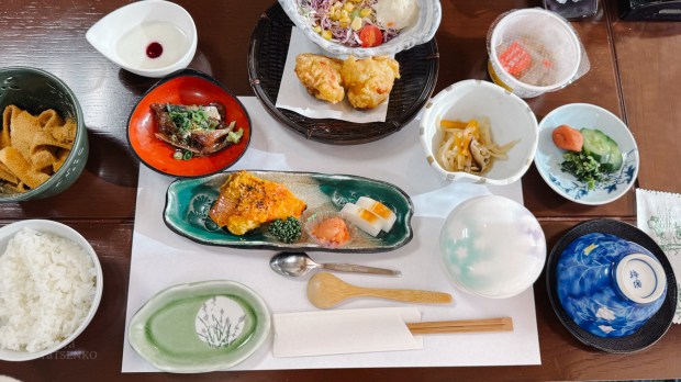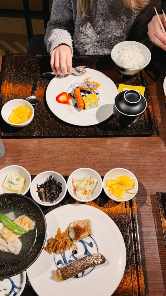 Our hotel included a Japanese-style breakfast. This meant that each person was served on a separate tray with several small bowls containing food like fish, omelet, seaweed, rice, miso soup, and tofu. You won’t find this kind of breakfast in Europe.