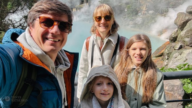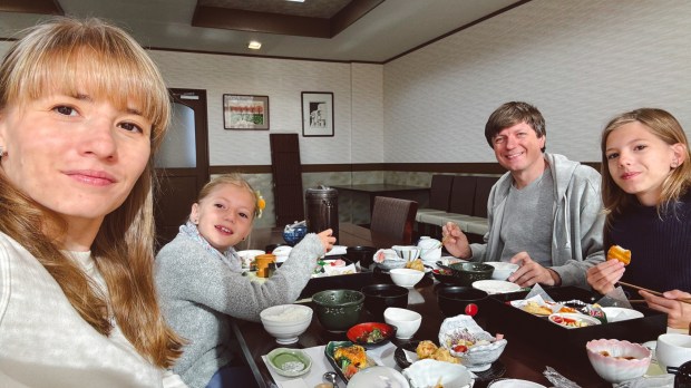 By evening, we reached Beppu, famous for its hot springs. After dinner in a sushi cafe, we booked a private family onsen to enjoy the evening together.