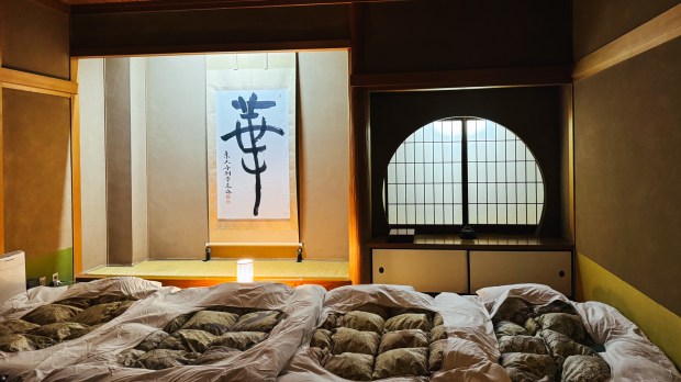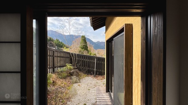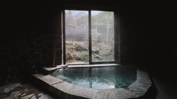 We stayed in a ryokan with an old-fashioned charm. It had its on private stone onsen.