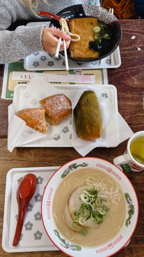 We had a lovely dinner at a small noodle shop with only eight seats on the premises of the hotel. An old man cooked and served everything himself. I ordered entirely in Japanese—my personal achievement for the day! 🙂