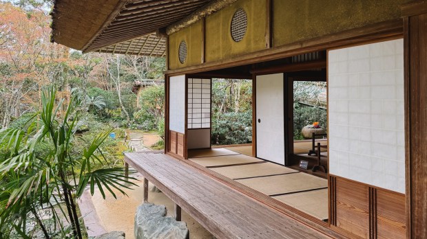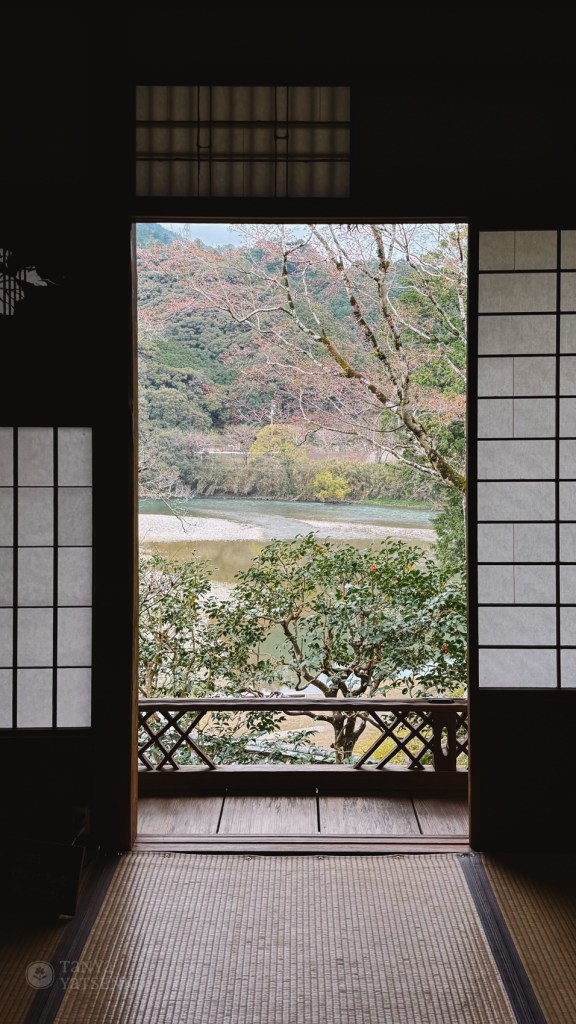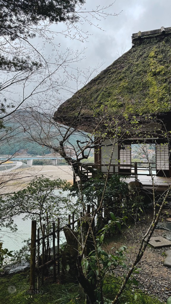 After this unique breakfast experience, we went to Garyu Sanso, a traditional Japanese house built around 1902 by a wealthy merchant. A lady showed us around and explained that the architects were from Kyoto. The house had been planned for ten years and built over four. Every detail was carefully thought out. We had bought tickets the day before at Ōzu Castle and weren’t sure what to expect, but it turned out to be one of the best traditional houses we’ve visited. Everything was well maintained, and the garden, with its view over the river and mountains, was breathtaking. We went in the morning, and it wasn’t busy at all.