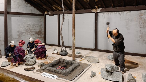 I found a nice theme parkMinetopia Besshi about mining, where we spent an hour or even more. A train took us to the entrance, and from there, we went inside a tunnel in the mountain to explore the life of miners in Japan. I couldn’t translate much because there was no internet connection inside the cave, but there were installations and a movie about their lives. The kids enjoyed the slides and exhibits.