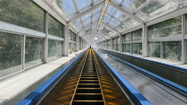 Our first stop was Naruto Mountain Lookout. We paid for access to the escalator with a glass roof—it was fun riding it up to see the view.