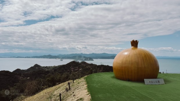 Next, we visited the Uzu no Oka Onaruto Bridge Memorial Museum, which had a giant onion statue and a view of the bridge from the other side. Awaji is known as Japan’s “onion island.” Their onions are incredibly sweet!