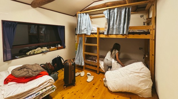 Arrival in Osaka and first stay in a hotel with a private onsen.