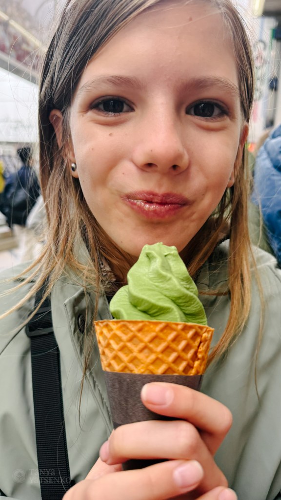 We had lunch at a small café that only serves eel and oysters. The kids weren’t too excited to try them but enjoyed the rice and miso soup that came with the sets. Alex ordered for us, but the waitress misunderstood and brought three sets instead of two. In the end, it turned out to be a good mistake! Next time, I think I should be in charge of ordering—I’ve never had an issue being understood.