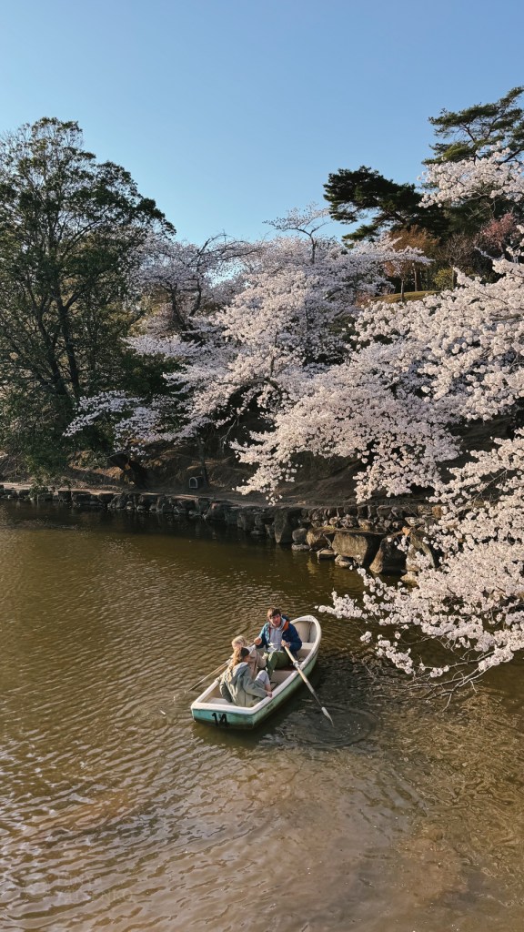 Route:Kobe → Nara We spent the day with gentle deer and blooming cherry trees at Nara Park. Lunch was at a small udon café by the lake, where the girls fed deer crackers. Our hotel overlooked the park, with tatami floors and tea served at check-in — peaceful and authentic, just like old Japan.