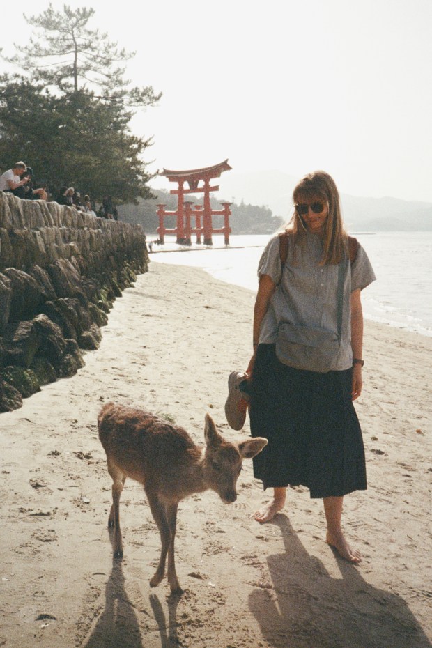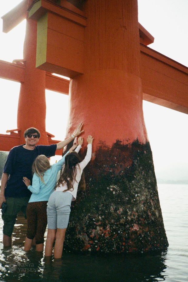 It was low tide, so we could walk up to the Itsukushima Shrine Otorii Gate. The water was freezing, but the experience was incredible.